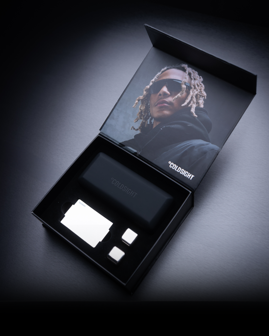 Every Coldsight order includes our designer-quality eyewear, a protective case, mirror, chrome ice cubes, and an unforgettable unboxing experience that’s as cold as the frames themselves.